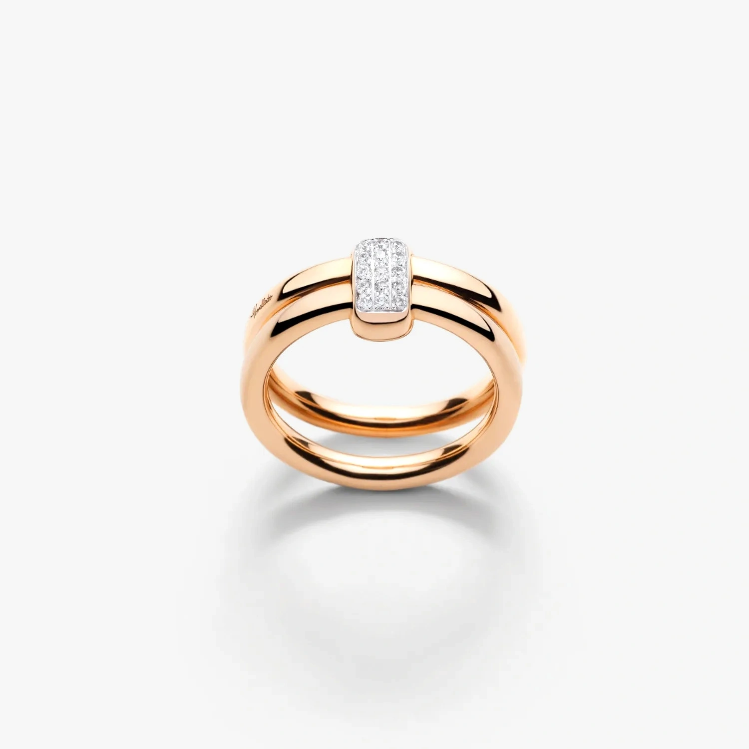 Anillo de oro rosa de 18 kt con 15 diamantes blancos (≈0,1 ct) sobre oro rosa rodiado blanco de 18 kt.