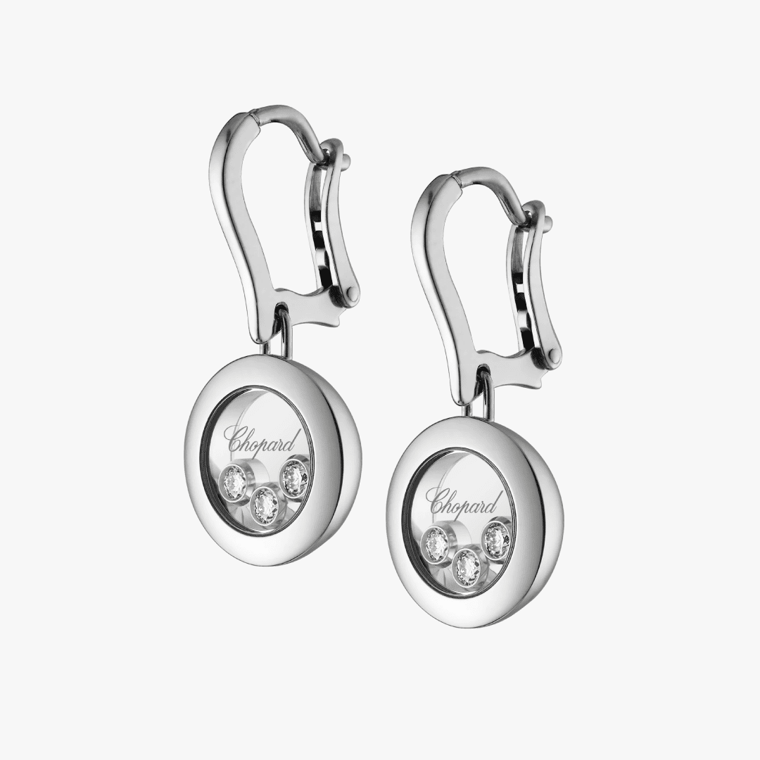 Aretes largos Chopard Happy Diamonds oro blanco 18K y diamantes