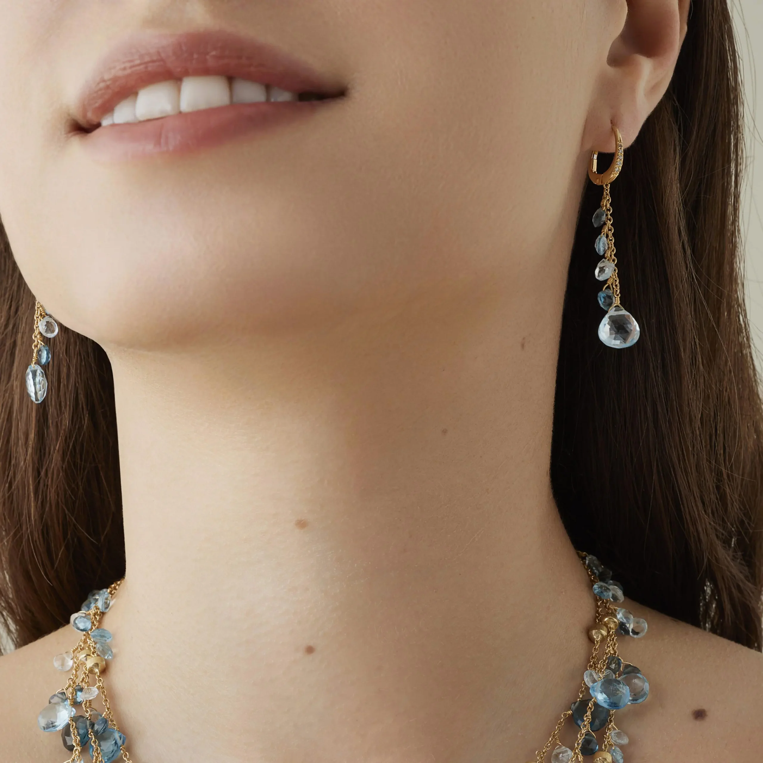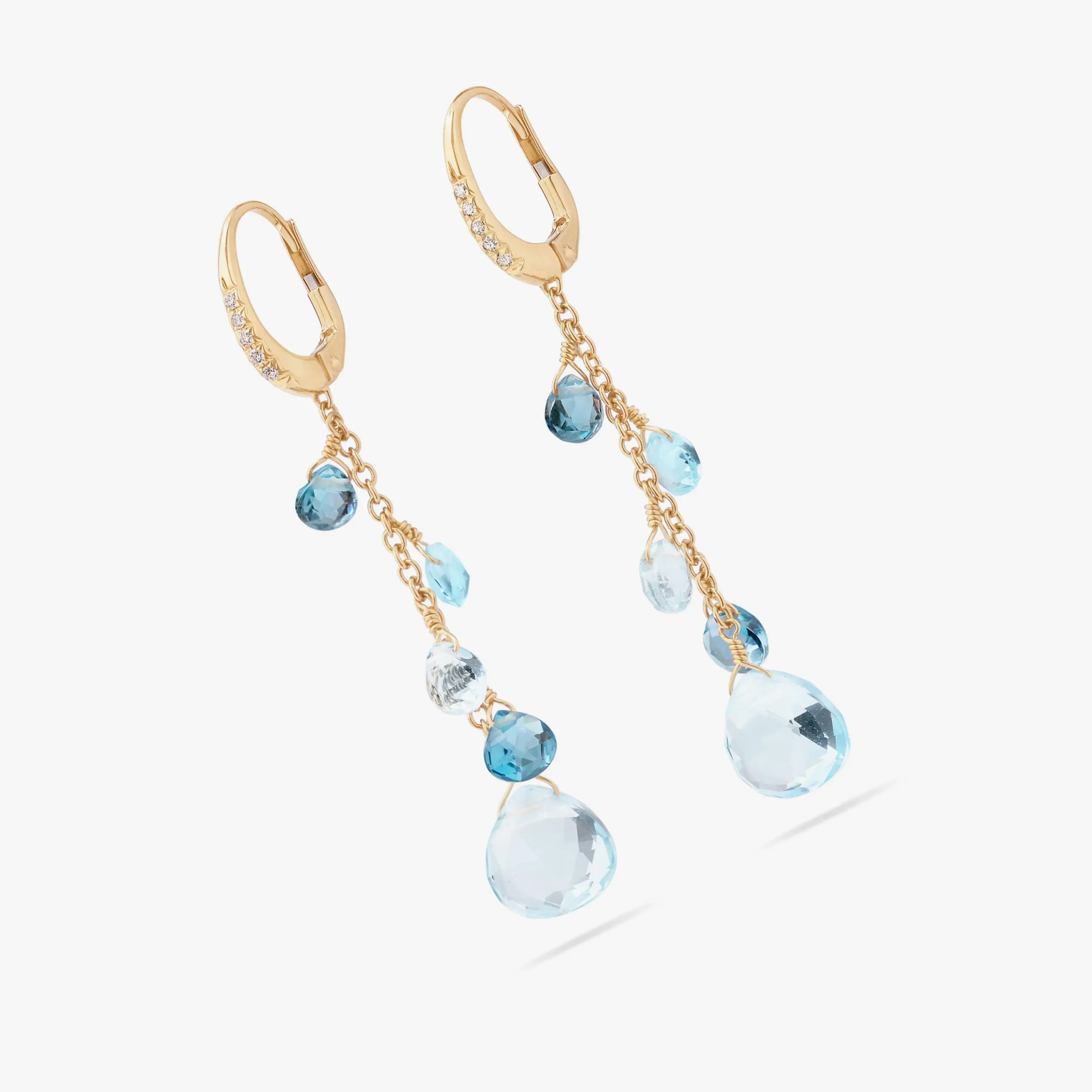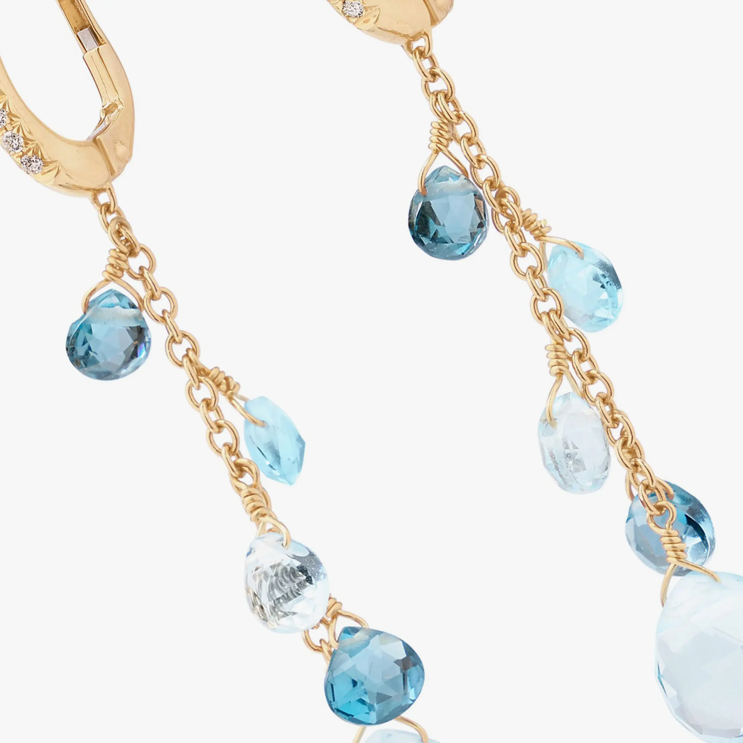 Aretes largos Marco Bicego Paradise oro amarillo 18K, diamates y topacios