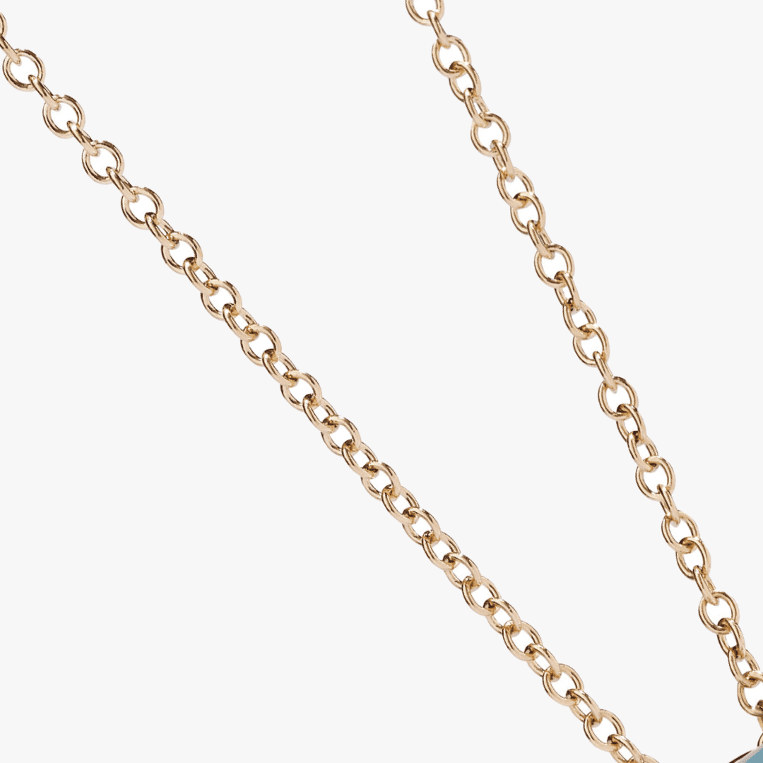 Chic y minimalista, el diseño de anillo más icónico de Pomellato lo encarna el colgante Nudo, en una variedad de colores brillantes. Este azúl, es uno de los preferidos.