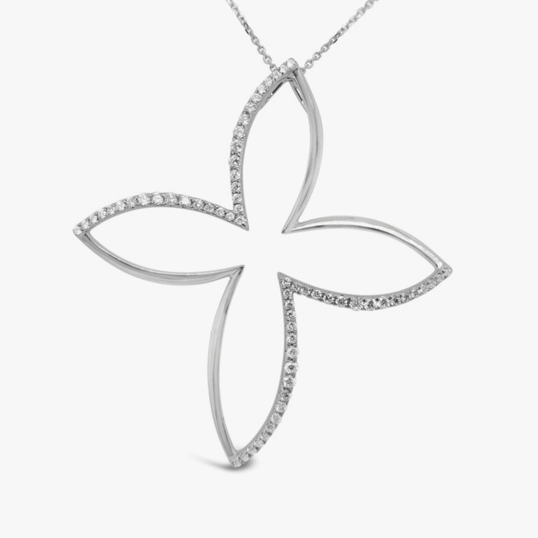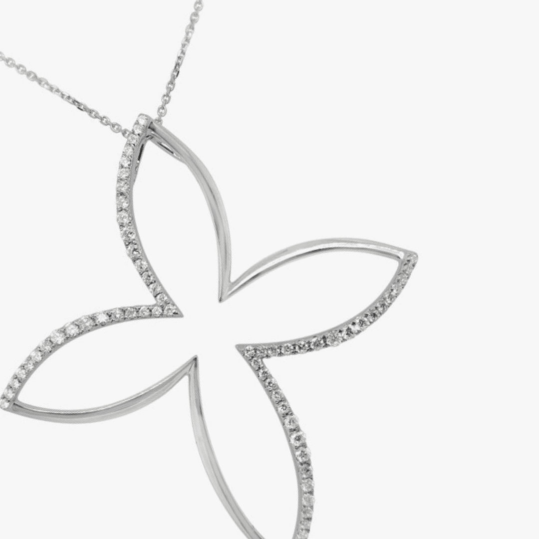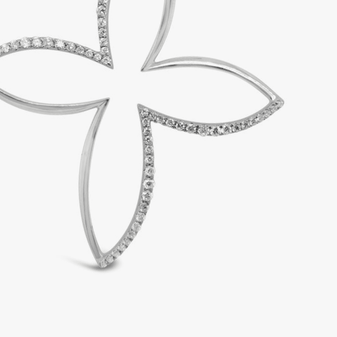 Pendiente flor XL con pavé de diamantes – oro blanco