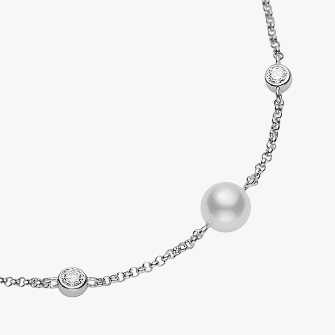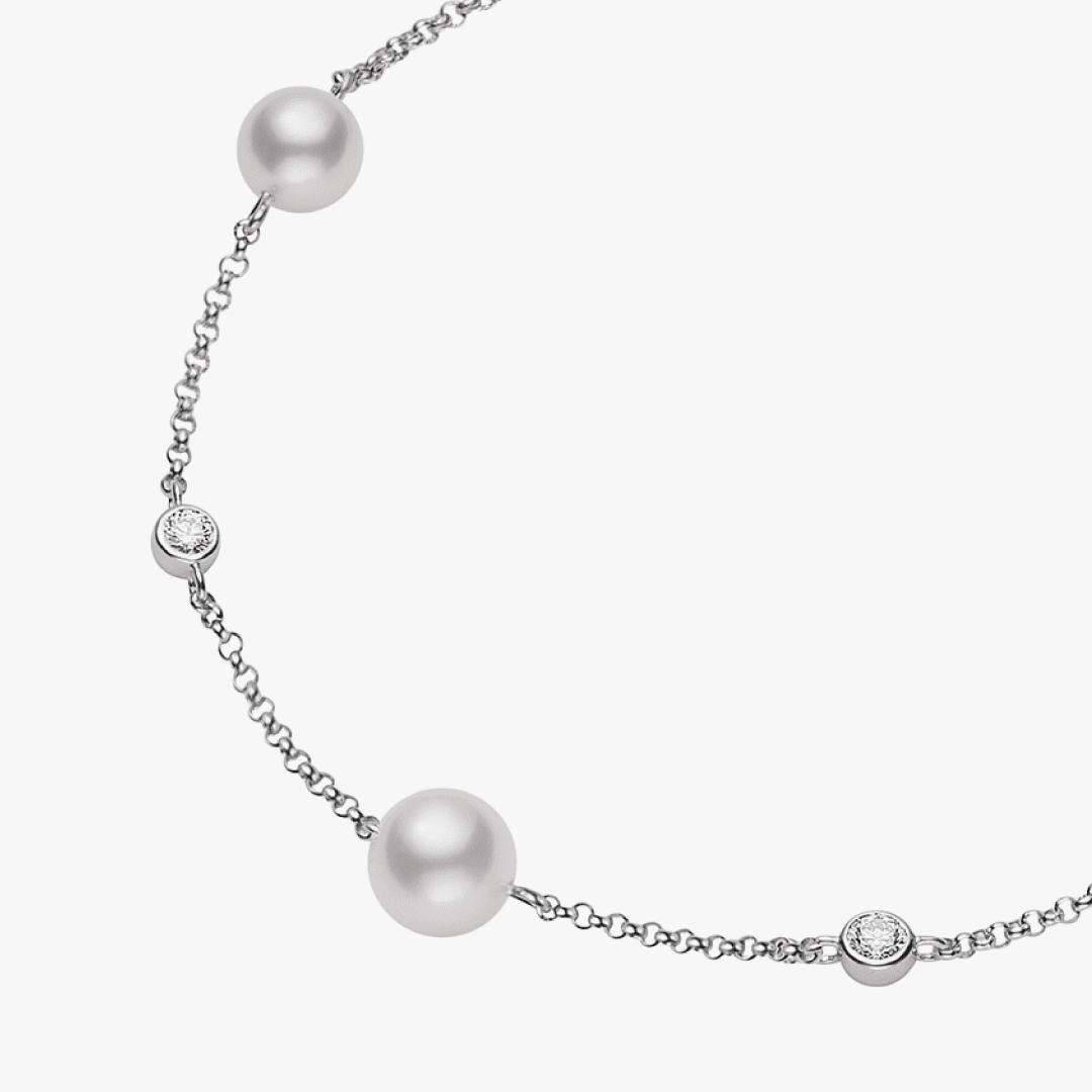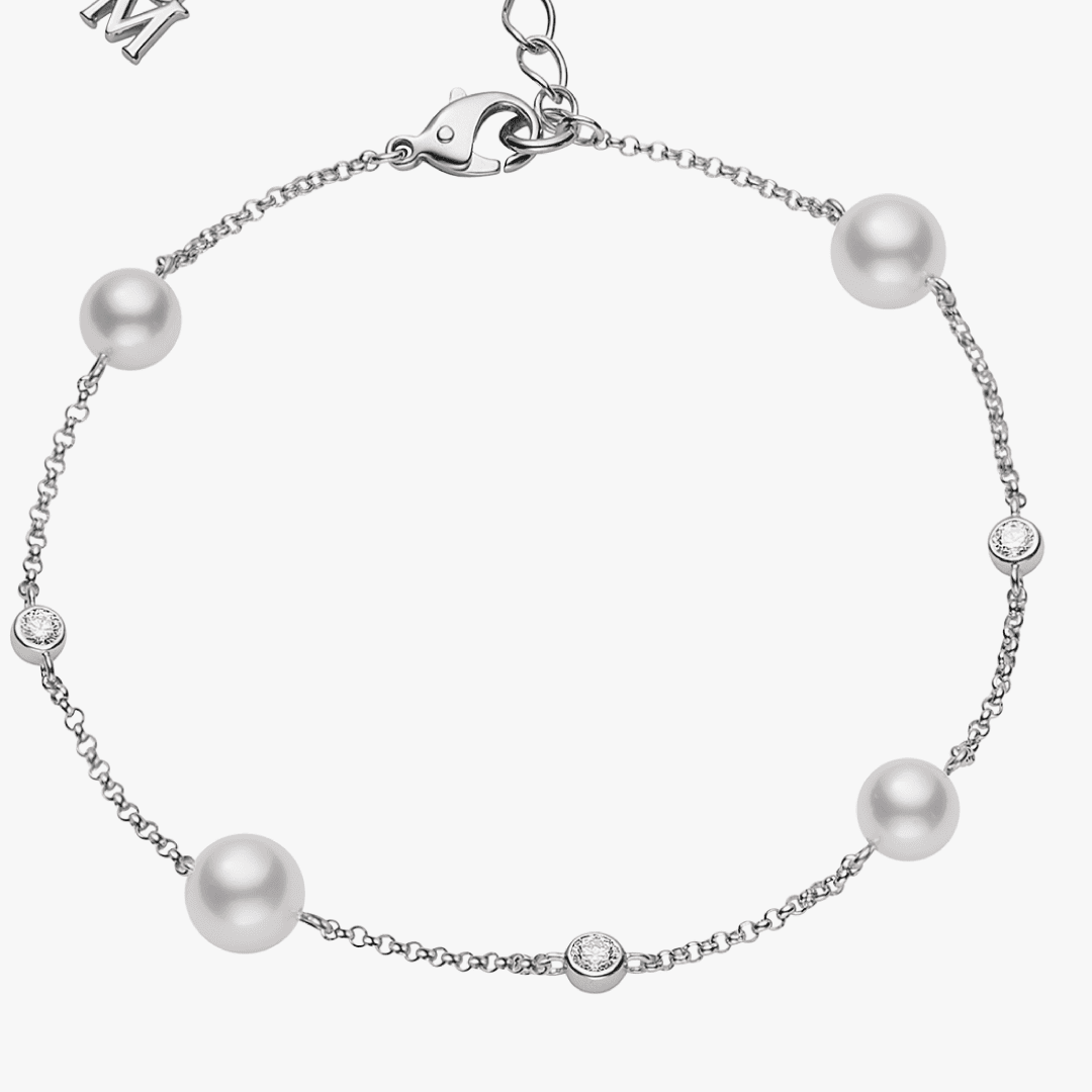 Pulsera Mikimoto Station oro blanco 18k, perlas Akoya y diamantes