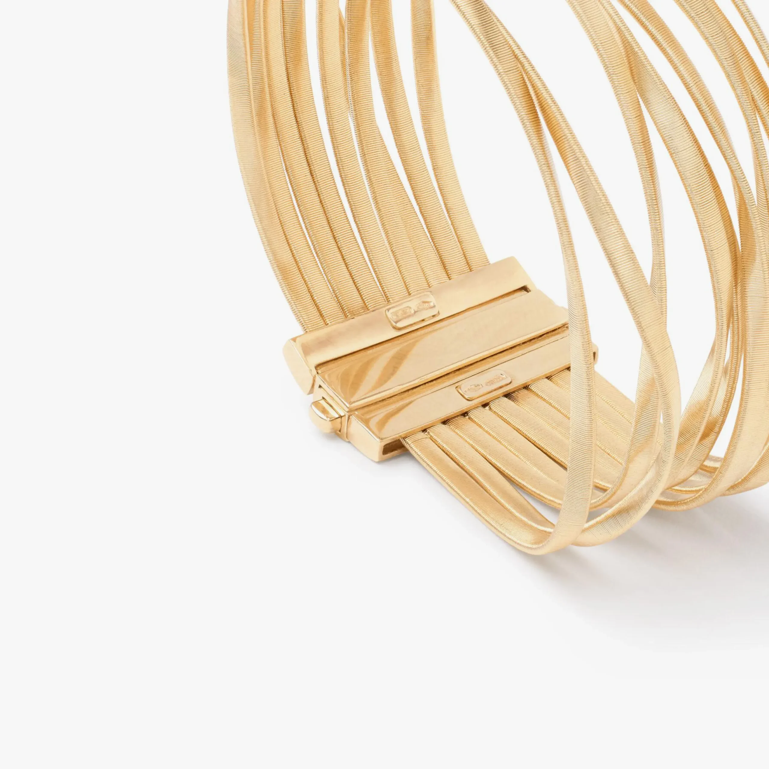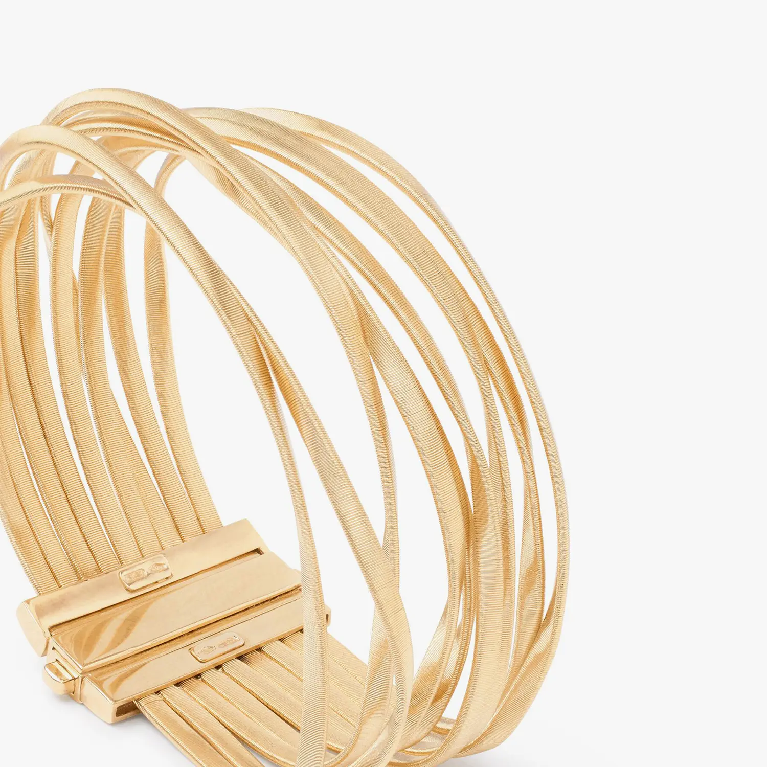 Esta pulsera de nueve hilos en espiral crea un dinámico juego de reflejos. Disponible en oro amarillo de 18 quilates, elaborada con la exclusiva técnica de espiral, es elegante y sofisticada. Una joya que no pasa desapercibida.