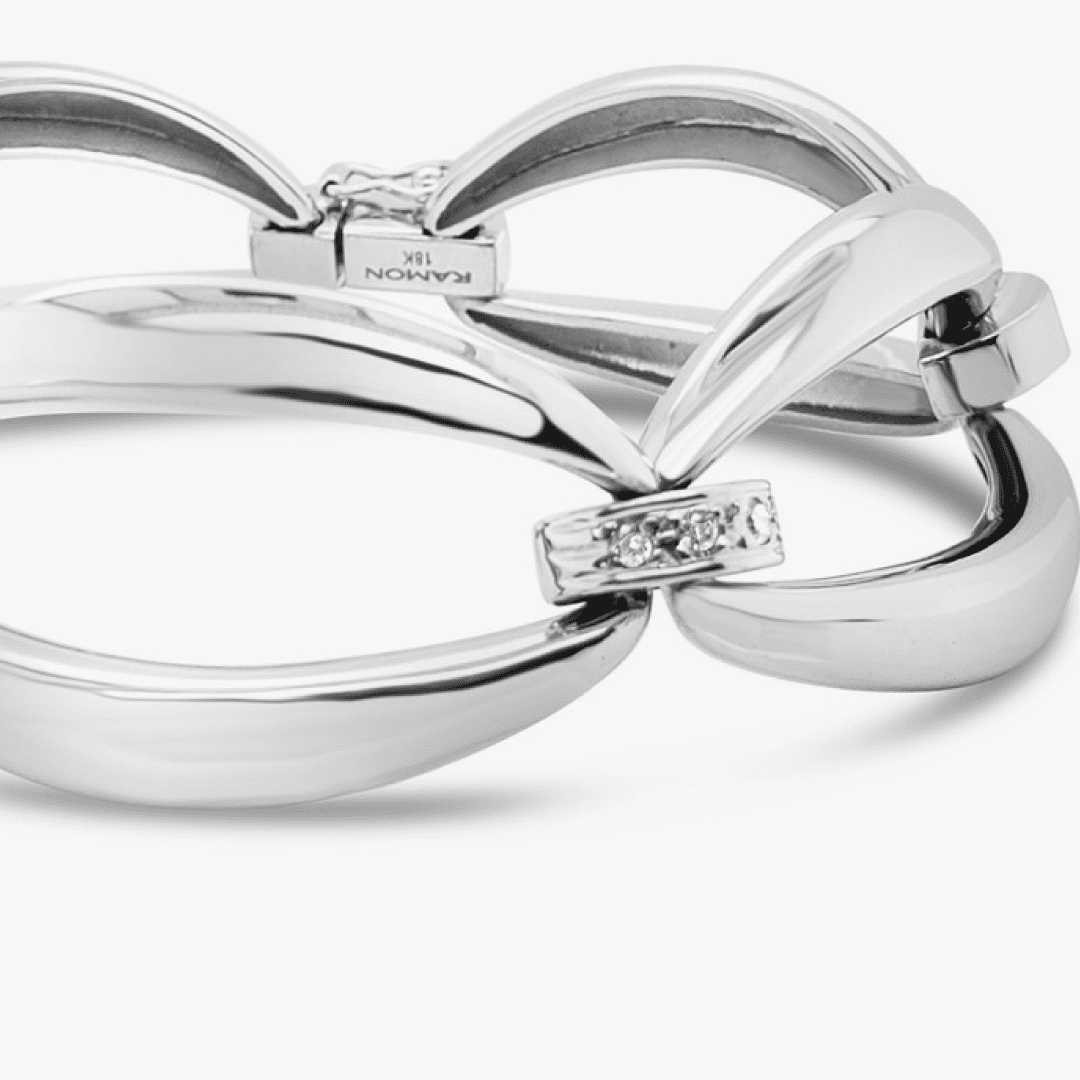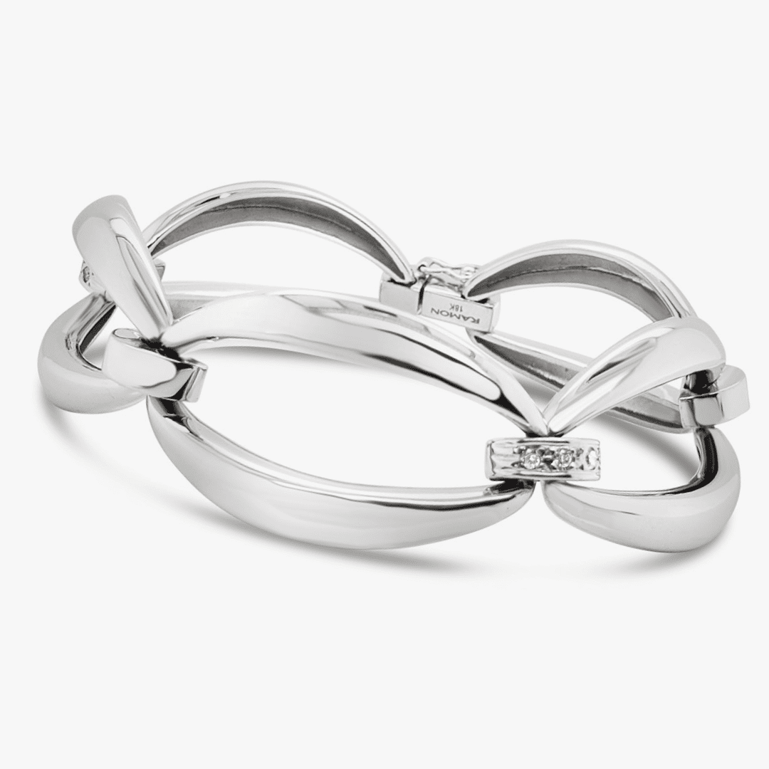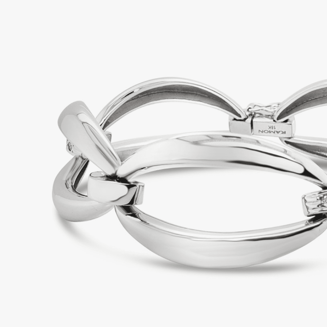 Pulsera óvalos navette XL y eslabones con diamantes – oro blanco