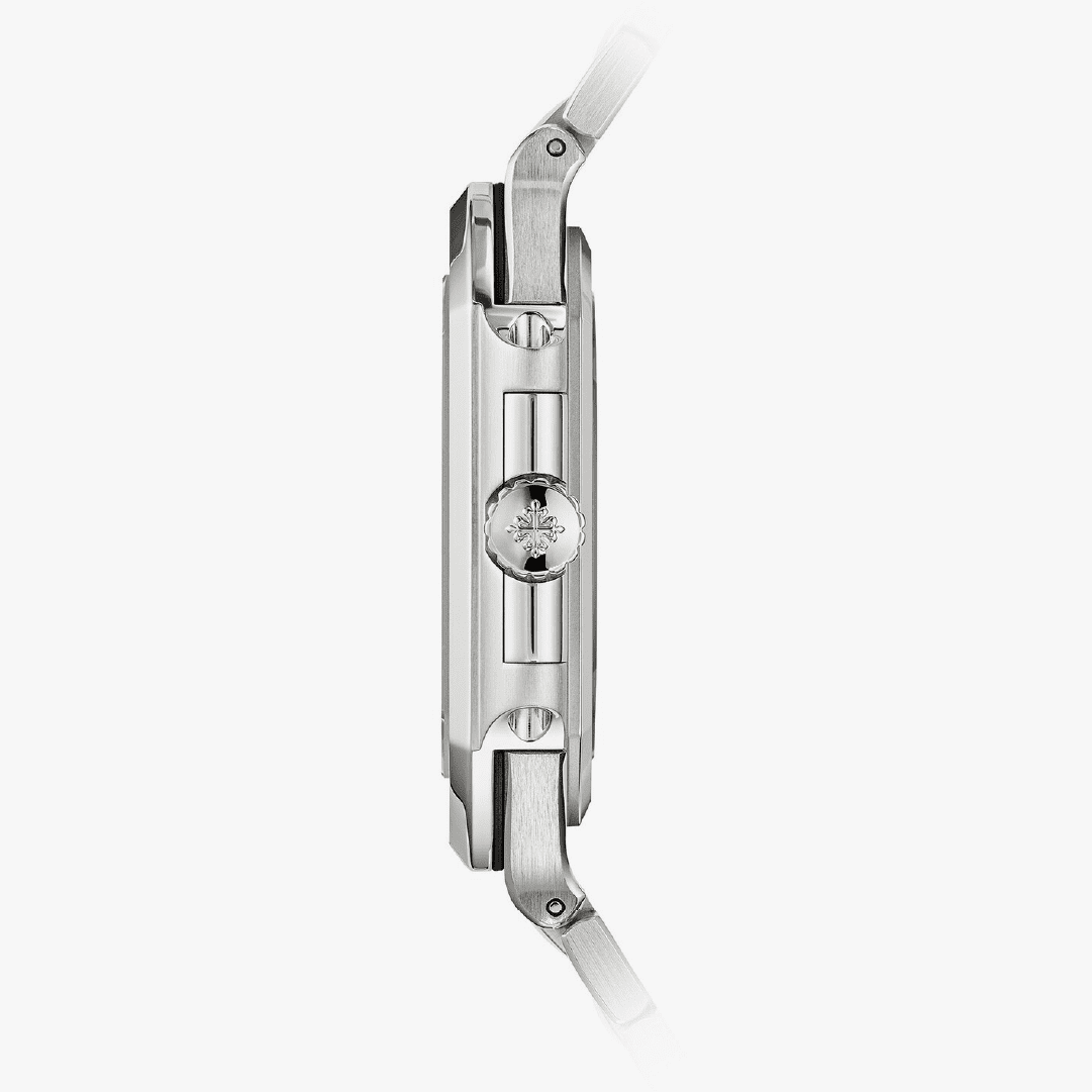 Patek Philippe reinventa el estilo chic informal en un modelo de acero totalmente nuevo, de diseño firme y moderno, realzado por la alternancia de los acabados pulidos y satinado vertical.