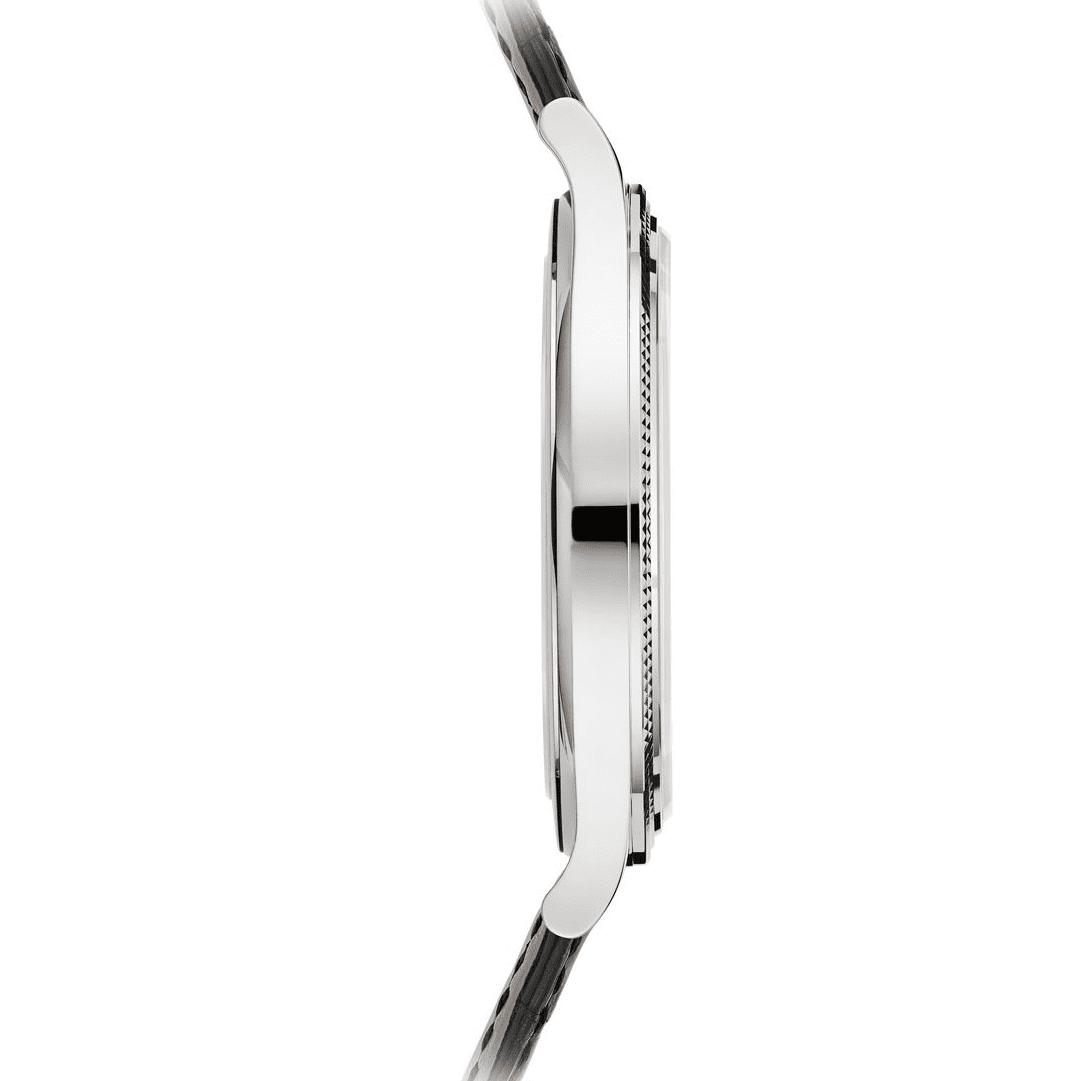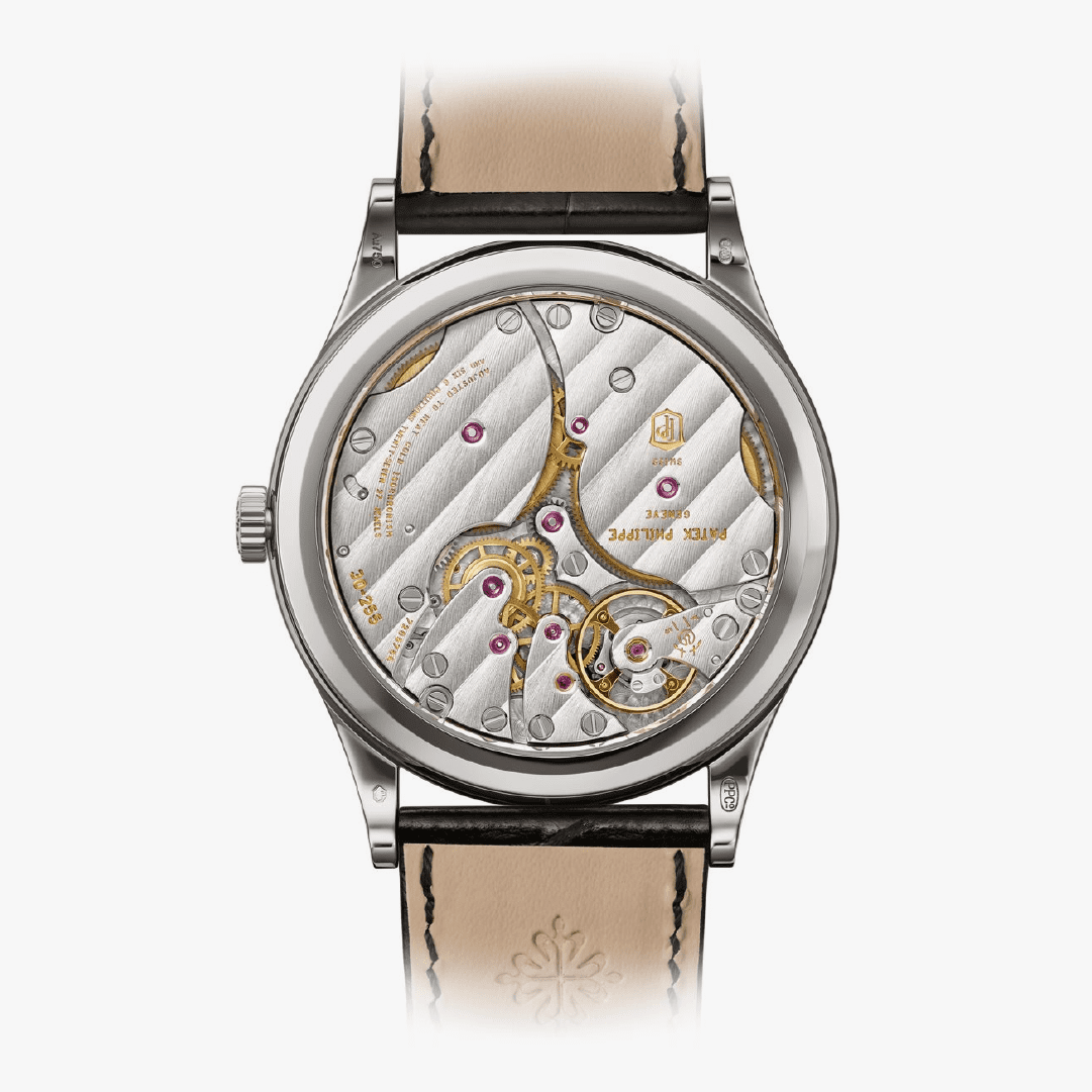 Patek Philippe da un nuevo impulso al famoso Calatrava con bisel guilloché Clous de Paris, con un diámetro ligeramente mayor y un rediseño con estilo contemporáneo. Los índices facetados de oro blanco de tipo obus, combinados con las agujas de tipo dauphine de las horas y los minutos, dan a la esfera un aspecto atemporal y depurado. La caja de oro blanco, elegante y refinada, alberga el nuevo movimiento de cuerda manual 30-255 PS con una reserva de marcha de 65 horas.
