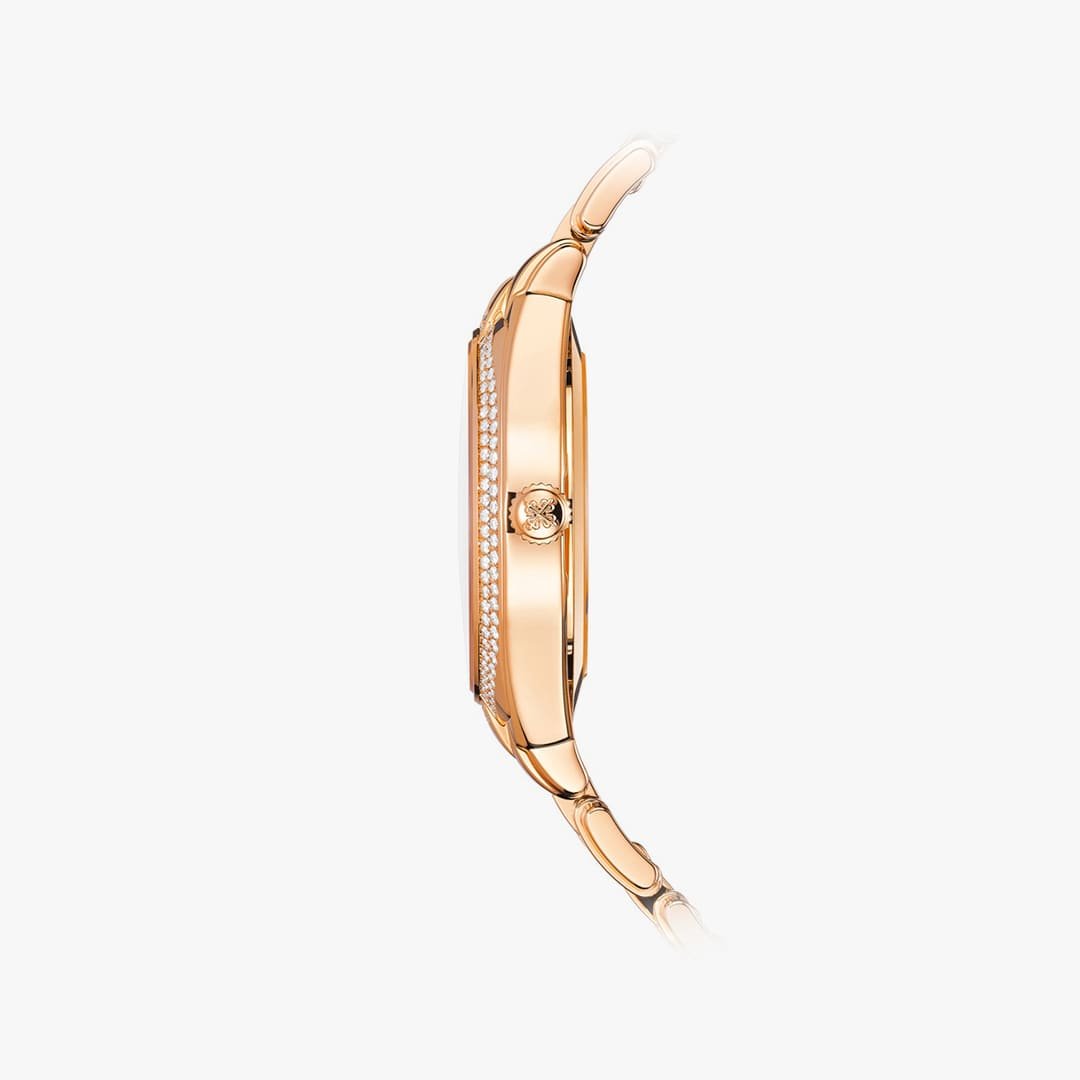 Caja: oro rosa. Fondo de cristal de zafiro. Estanca hasta 30 m. Diámetro: 36 mm. Altura: 10,05 mm.