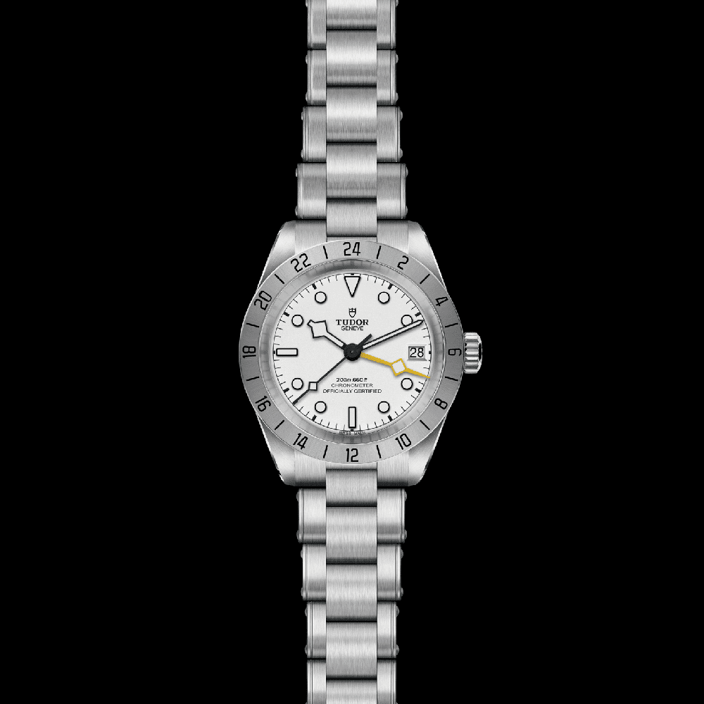 TUDOR presenta un modelo técnico denominado Black Bay Pro. Tiene un diámetro de 39 milímetros, bisel fijo de acero y un calibre de manufactura con función GMT integrada.