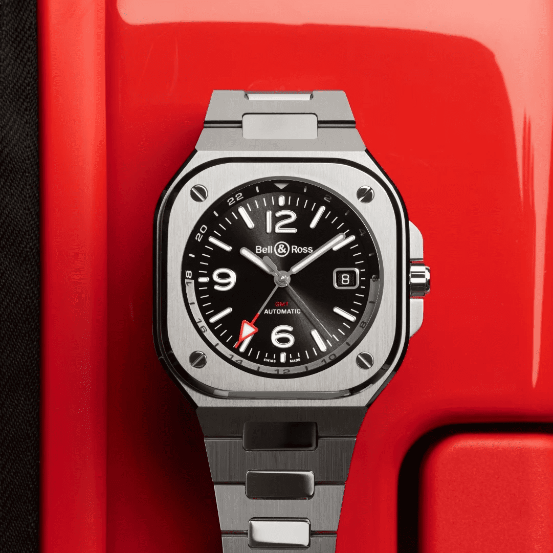 En el primer modelo de zona horaria dual de la gama 05, Bell & Ross ofrece una interpretación más urbana de los viajes y el tiempo. La falta de movilidad ha hecho que la experiencia del viaje sea muy deseable, al igual que el entorno de los aeropuertos y los aviones. El dinamismo de las zonas de embarque y el alegre ruido del panel de programación de vuelos, son el escenario de los trotamundos. De hecho, esta nueva creación dentro de la colección BR 05, se convierte en la enseña de este vigor. Un diseño distintivo, inspirado en el mundo profesional de las herramientas diseñadas para una misión específica. Una elegante y ergonómica armadura de acero. El mecanismo está configurado en dos zonas horarias. Estos son los códigos del nuevo instrumento del explorador urbano. El BR 05 GMT está diseñado para viajar y acompañar la transición entre diferentes realidades urbanas. Es la herramienta definitiva para los trotamundos.